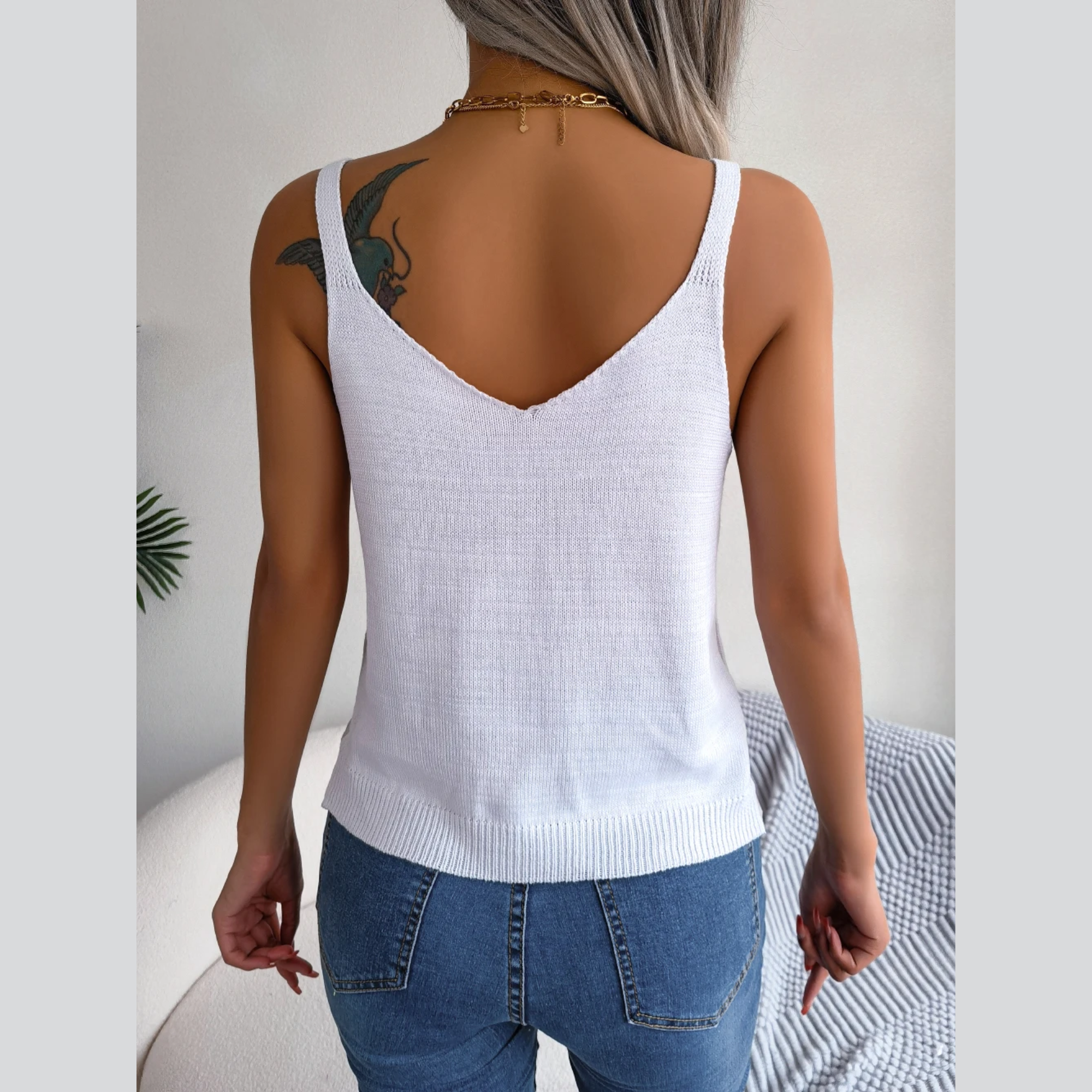 Wir erkennen immer einen Trend, der bleibt und begeistert – und Cindy ist die Richtige. Dieses schmeichelhafte Tanktop hat einen ausgehöhlten Strick mit Rundhalsausschnitt und einer dekorativen Schnalle am Träger. Ob in die Hose gesteckt oder locker getragen – dieses Tanktop ist ein echter Hingucker.