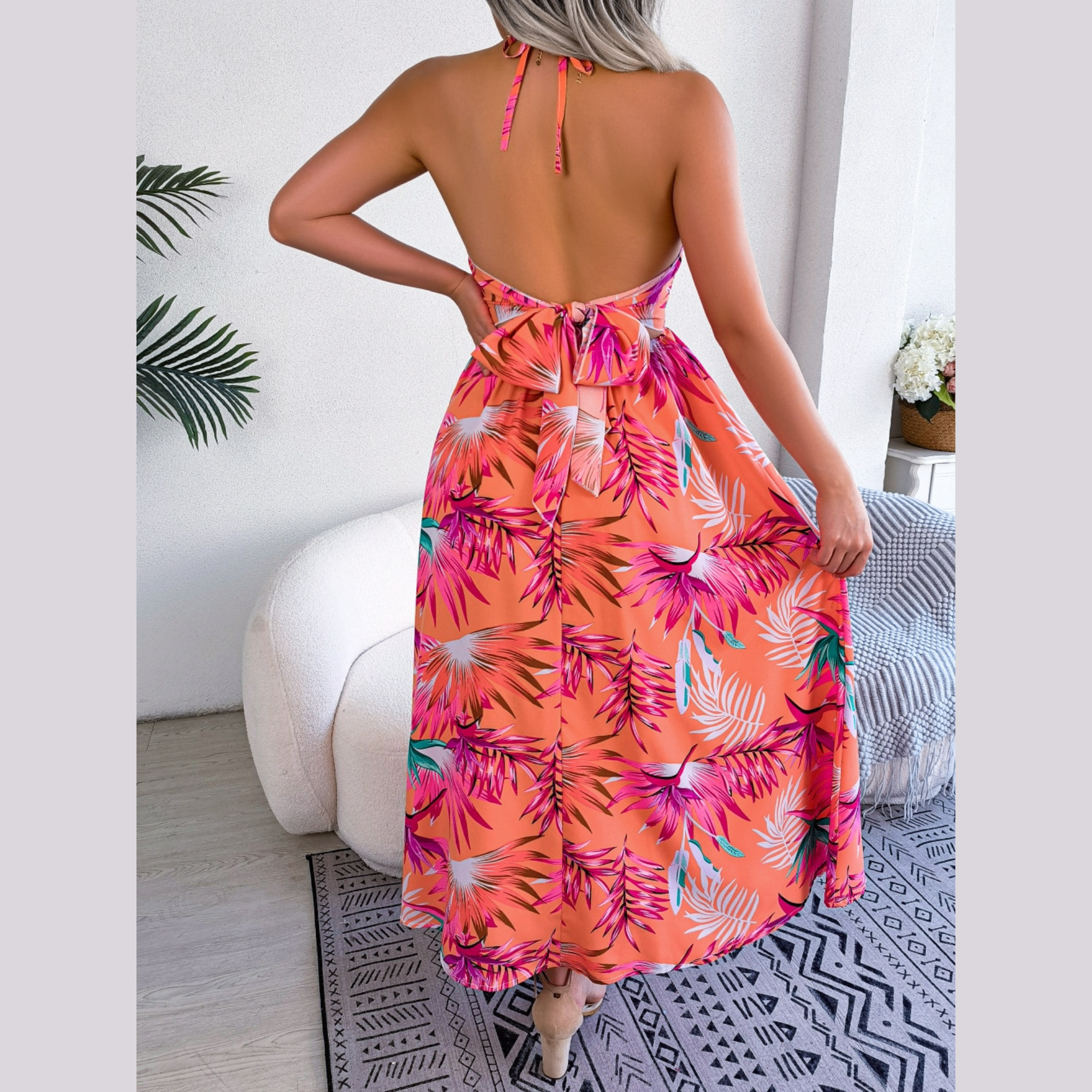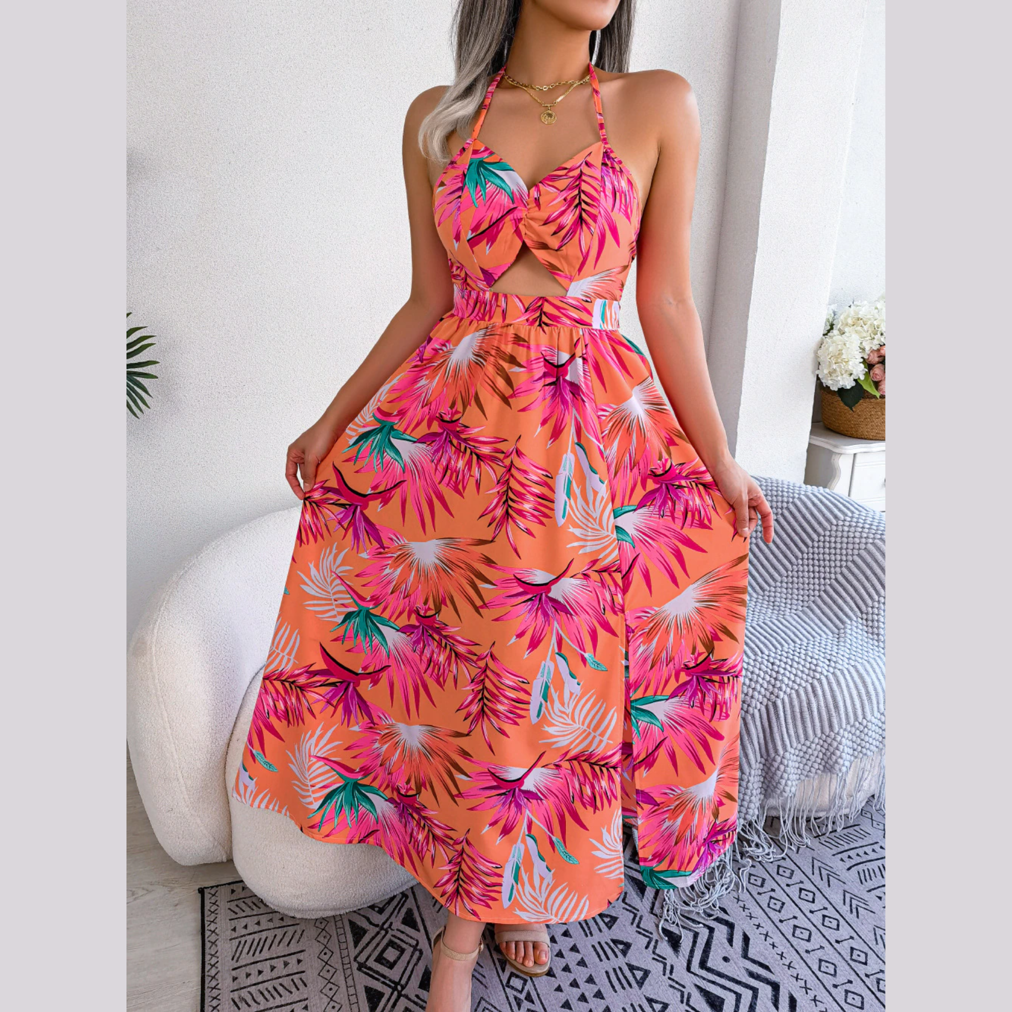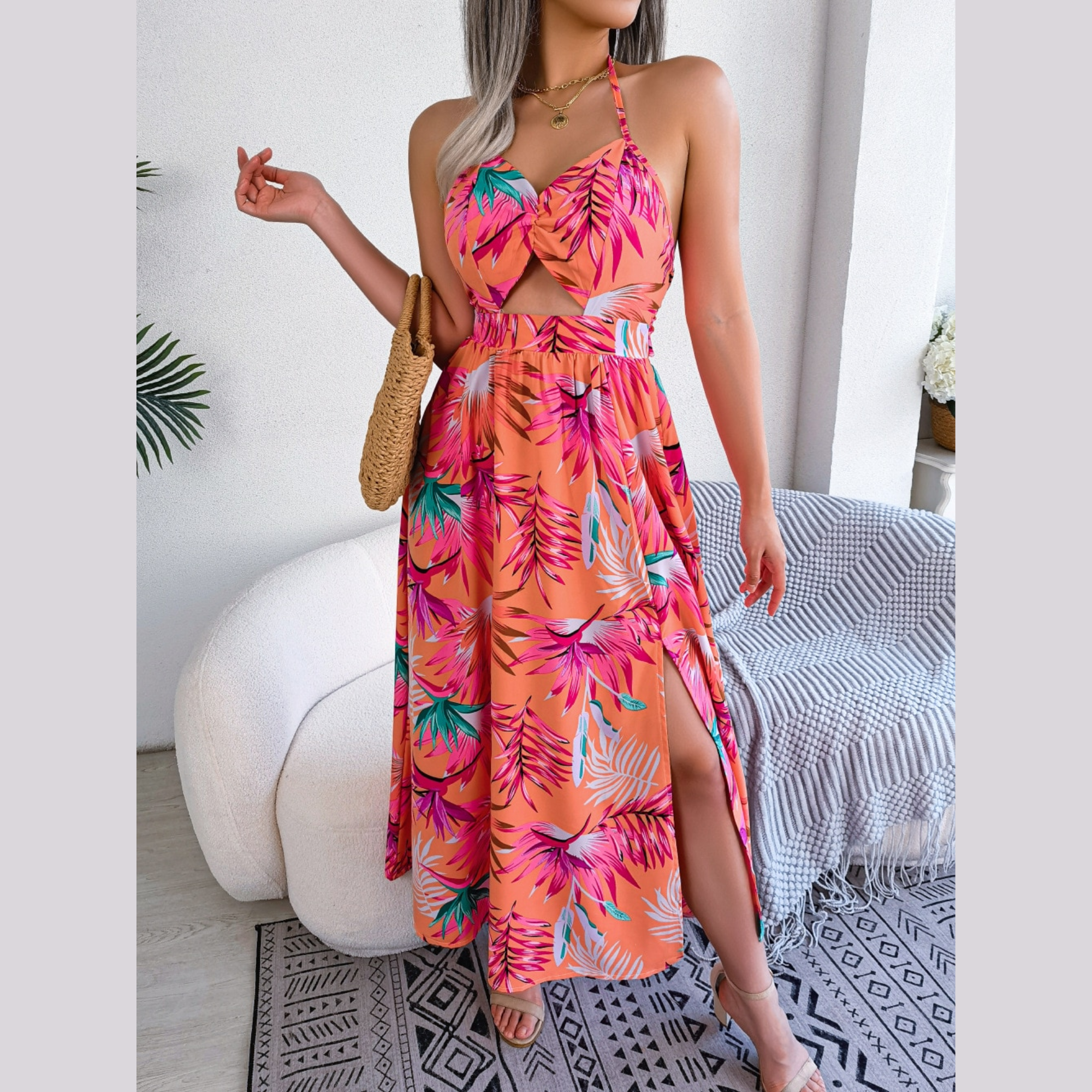 Wir fordern Sie auf, mit Eloise etwas Rouge zu tragen. Dieses vom Strand inspirierte Minikleid besticht durch einen Palmenblatt-Print mit Aussparung in der Mitte. Es hat Neckholder-Träger, einen herzförmigen Ausschnitt und eine schmeichelhafte Passform, die in einen oberschenkelhohen Schlitz mündet.