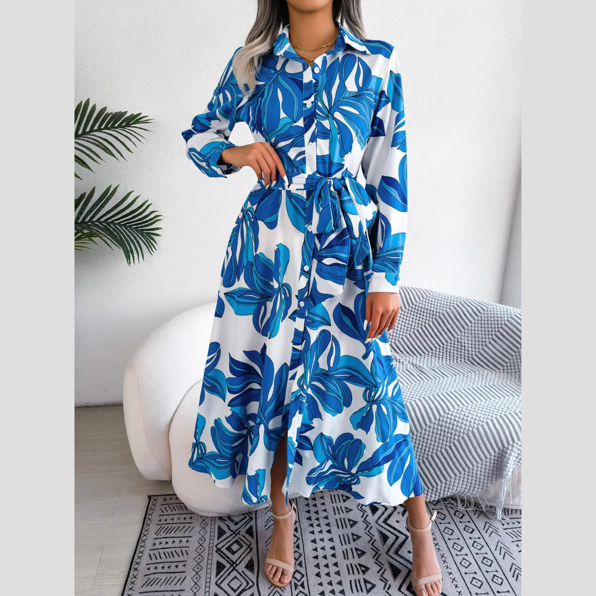 Wir können nicht anders, als uns deinen Stil zu merken – Inaya übernimmt die Führung und ergänzt alles, womit sie kombiniert wird. Dieses geblümte Kleid hat eine Knopfleiste mit Kragenausschnitt und einer dekorativen Schleife an der Taille. Der Schlitz in der Midilänge des Kleides hängt von deiner Stimmung ab.