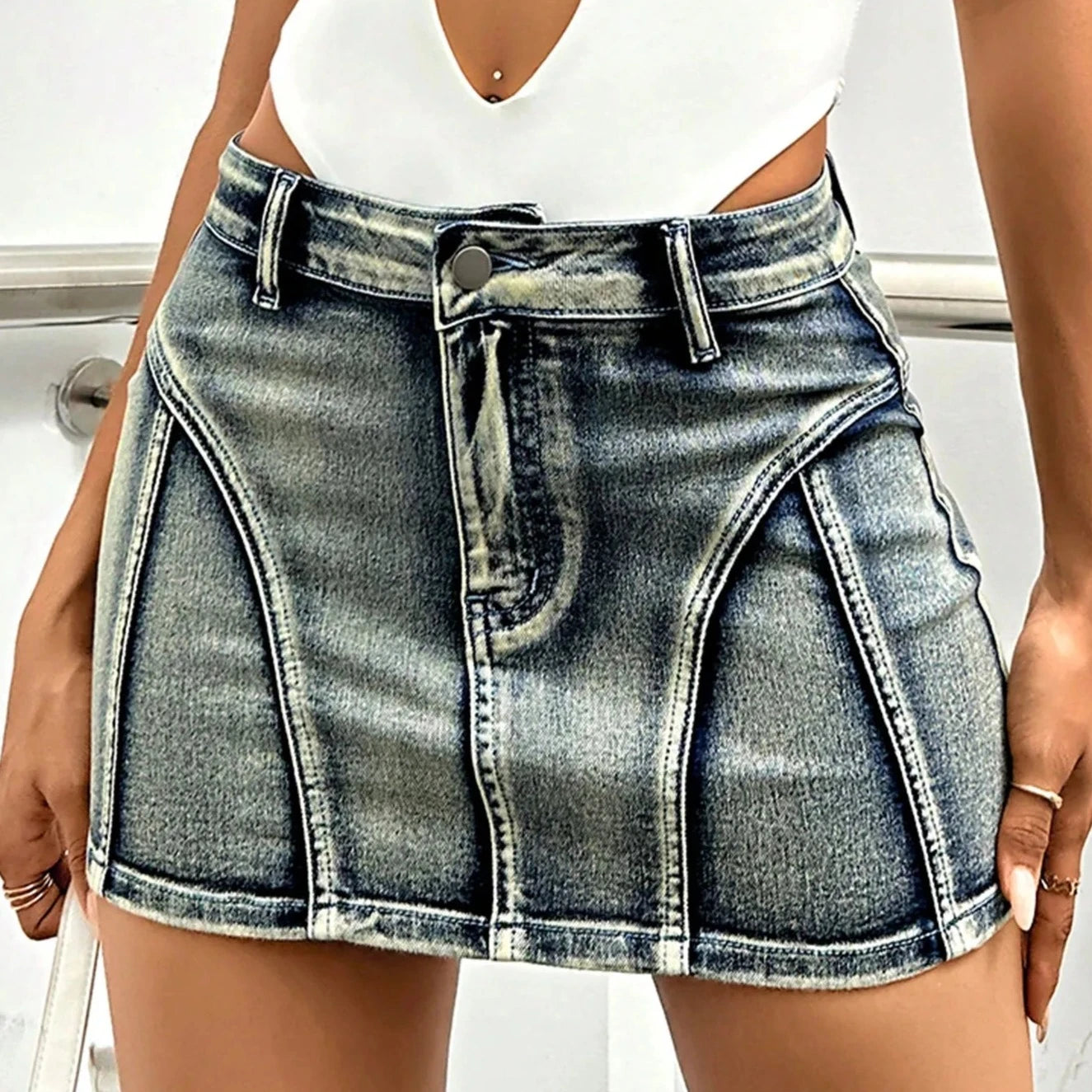 Dieser stylische A-Linien-Jeans-Minirock verleiht Ihrem lässigen Outfit eine erfrischende Note. Sein schickes Design gepaart mit der Robustheit des Denim-Materials garantiert Eleganz und Langlebigkeit. Perfekt für legere Tage oder Wochenendausflüge mit Freunden. Ob mit einer frischen weißen Bluse oder einem schlichten T-Shirt getragen, dieser Rock unterstreicht Ihr modisches Statement.