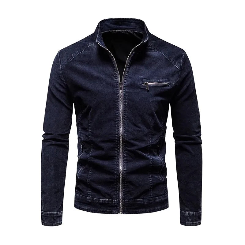 Effortlessly cool and versatile, this men’s casual jacket is designed with a rugged washed finish and a modern slim fit. Featuring a stand collar, zip-front closure, and functional pocket detailing, it’s the perfect layering piece for casual outings, weekends, or nights out. Pair it with jeans and boots for a classic look or style with joggers for a relaxed edge. Also available in khaki and navy.