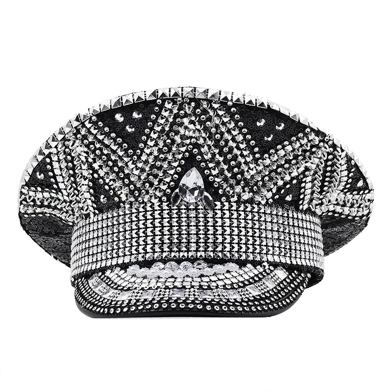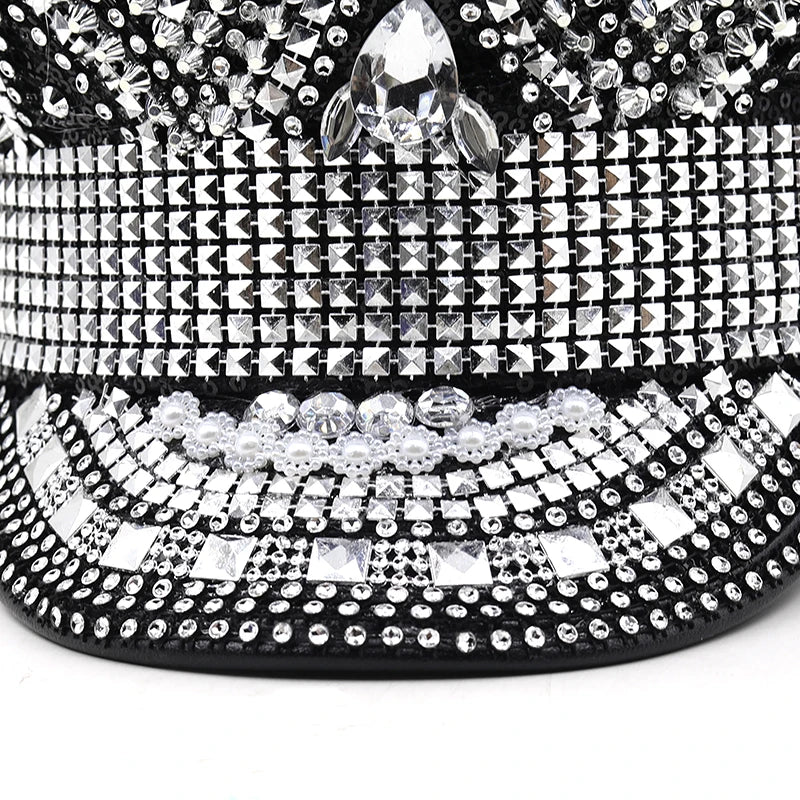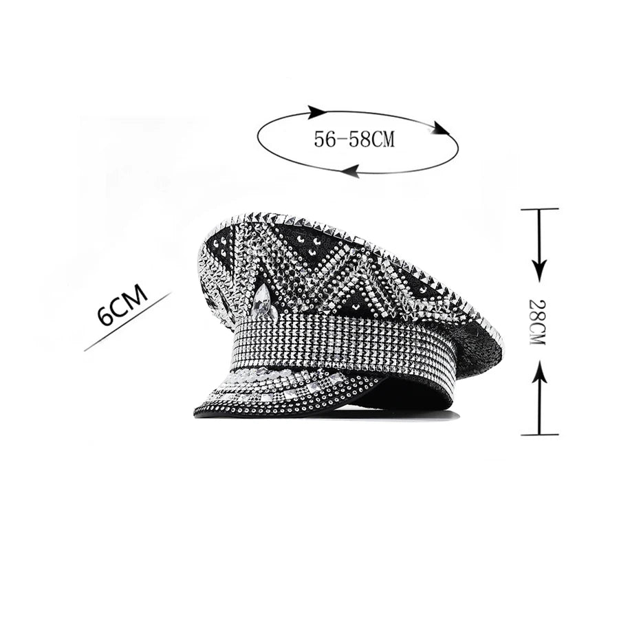 Unser schwarzer Luxus-Cabbie-Hut, verziert mit funkelnden silbernen Strasssteinen, ist das ultimative Accessoire für alle, die die schönen Dinge des Lebens zu schätzen wissen. Das edle schwarze Finish dieses Hutes harmoniert perfekt mit den auffälligen silbernen Strasssteinen und kreiert einen zeitlosen und modernen Look. Ob Sie eine Gala besuchen oder einfach nur abends ausgehen, dieser Hut verleiht Ihrem Outfit einen Hauch von Raffinesse und Glanz. Er ist die perfekte Kombination aus Komfort, Stil und Eleganz.