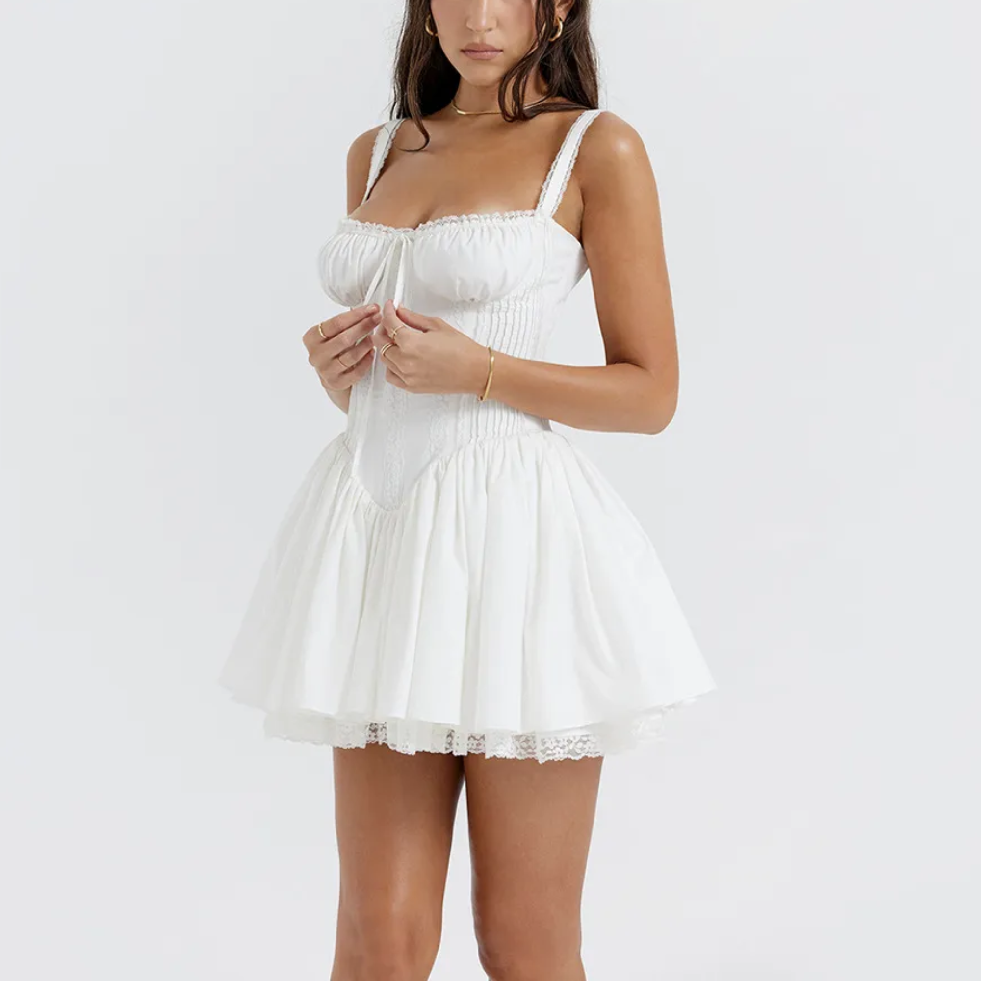 Enthüllen Sie Ihre innere Stilexpertin mit diesem wunderschönen, figurbetonten A-Linien-Kleid. Das Kleid wurde für moderne Frauen entworfen und besticht durch einen geschmackvollen, quadratischen Ausschnitt. Der schmeichelnde A-Linien-Schnitt betont die Taille und geht in einen luftigen, ausgestellten Schnitt über. Es zaubert die perfekte Sanduhrfigur und ist somit ideal für alle Figurtypen. Das Kleid besticht durch eine charmante Schnürung am Rücken, die diesem zeitlosen Stück einen Hauch schicker Eleganz verleiht.