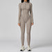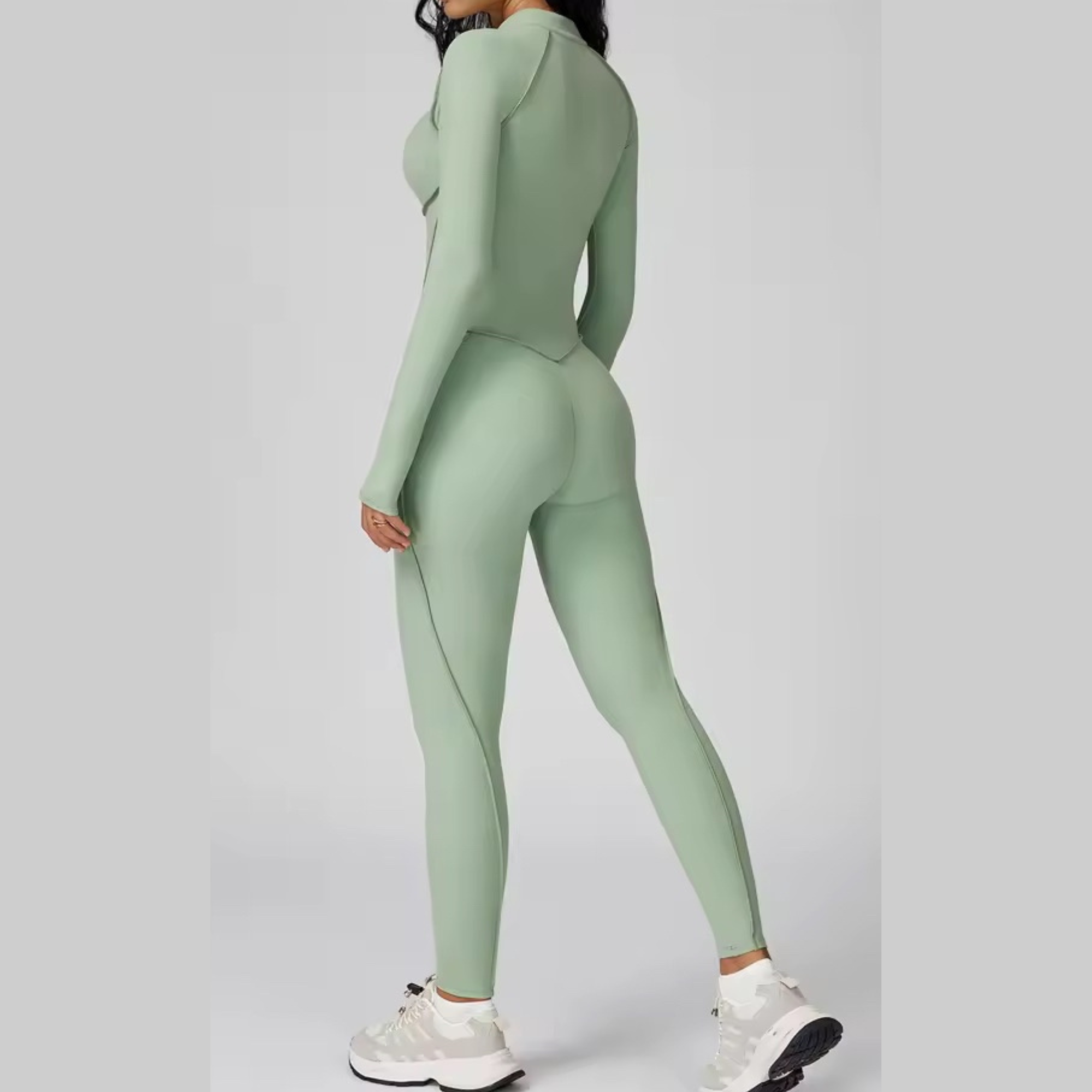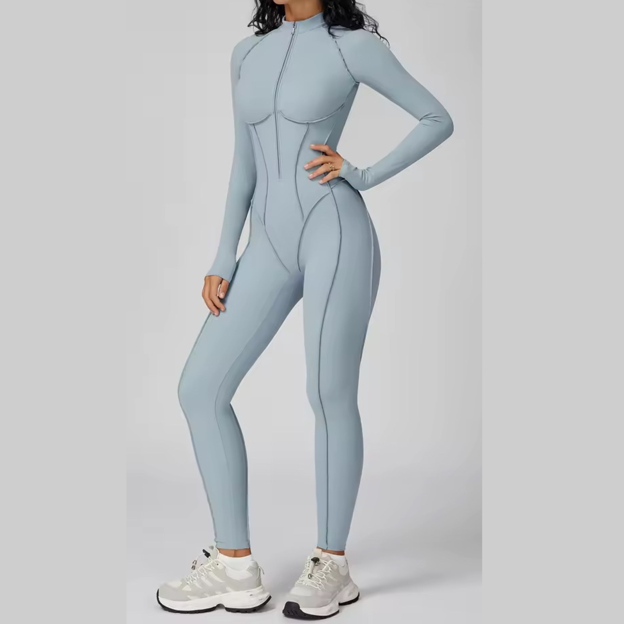 Elevate your workout wardrobe with this curve-enhancing, full-length activewear jumpsuit designed for both performance and style. The body-hugging fit cinches the waist and contours your shape, while the sleek seam detailing gives a sculpted, hourglass look.