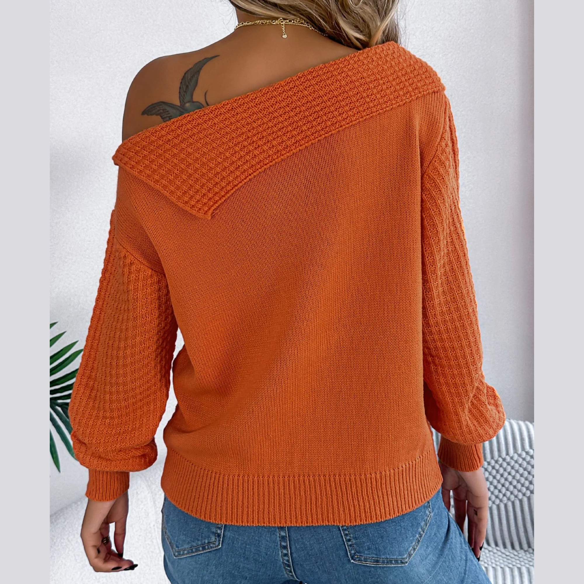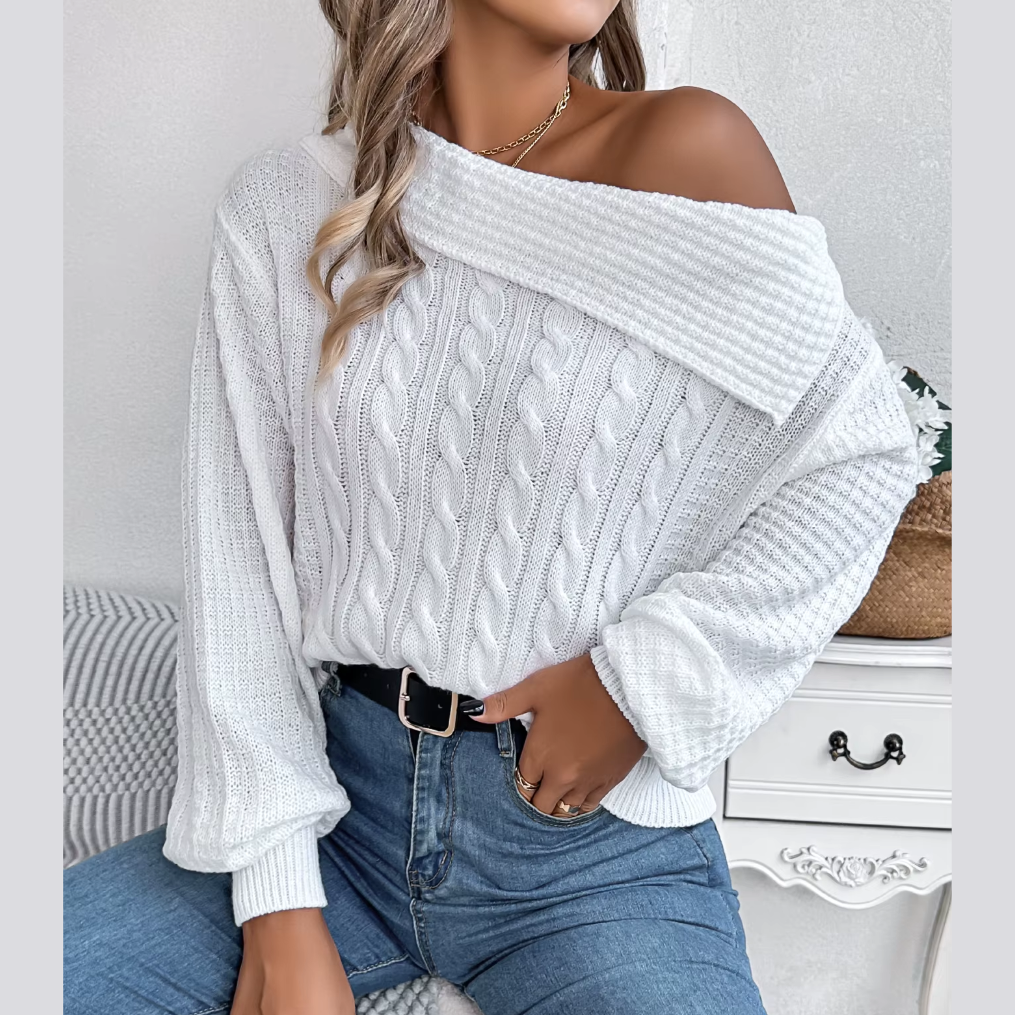 Envuélvete en sofisticación elegante con este suéter asimétrico de un lado fuera del hombro. Hecho a mano para la elegancia moderna, cuenta con elegantes mangas de linterna que agregan un toque dramático. Hecho de una tela suave y cómoda, es perfecto para una noche o una noche acogedora. Este suéter único ofrece un toque vanguardista a sus elementos esenciales de su armario, lo que le permite hacer una declaración de moda con un esfuerzo mínimo. Combínalo con jeans o una falda para crear looks versátiles que transiciones sin esfuerzo de un día a noche.
