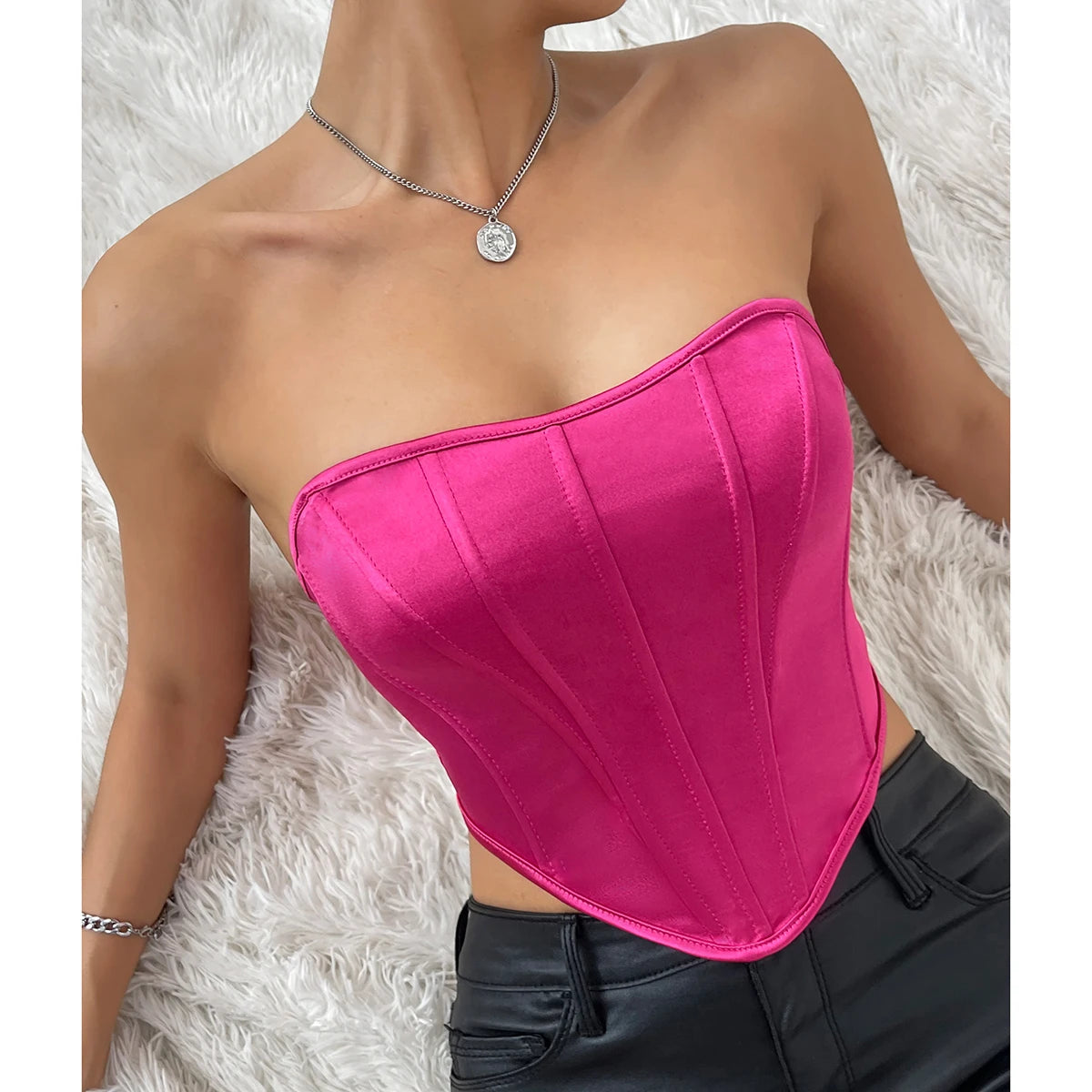 Haga una declaración de moda extraordinaria con la tapa del corsé sin corsés sin tirantes. Diseñada con precisión, la estructura del espino de pescado proporciona un ajuste inmaculado, mejorando sus curvas. Los detalles al estilo del corsé lo distinguen de sus tops normales, agregando una ventaja a su apariencia. Cómodo y duradero, puede resistir las demandas de un guardarropa de moda. Ideal para varios eventos sociales, combinándolo con un elegante ropa de fondo para completar su aspecto impresionante.