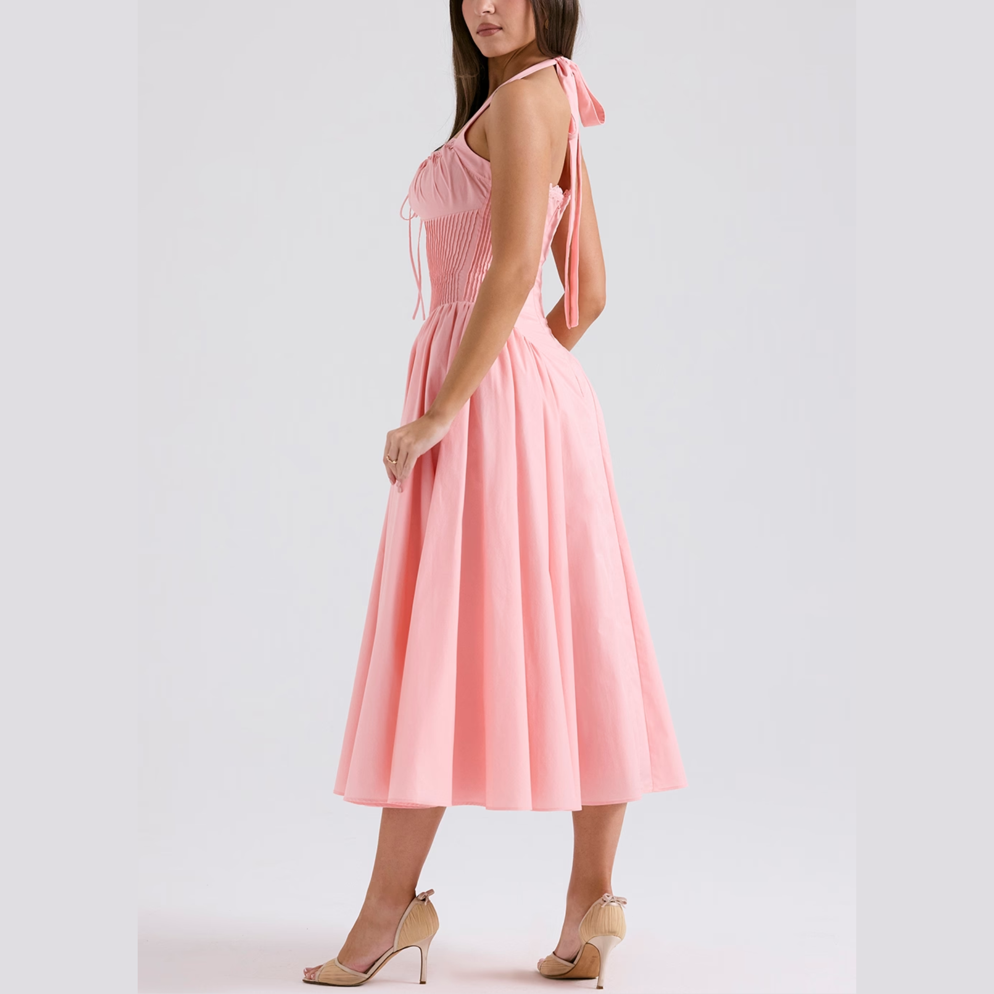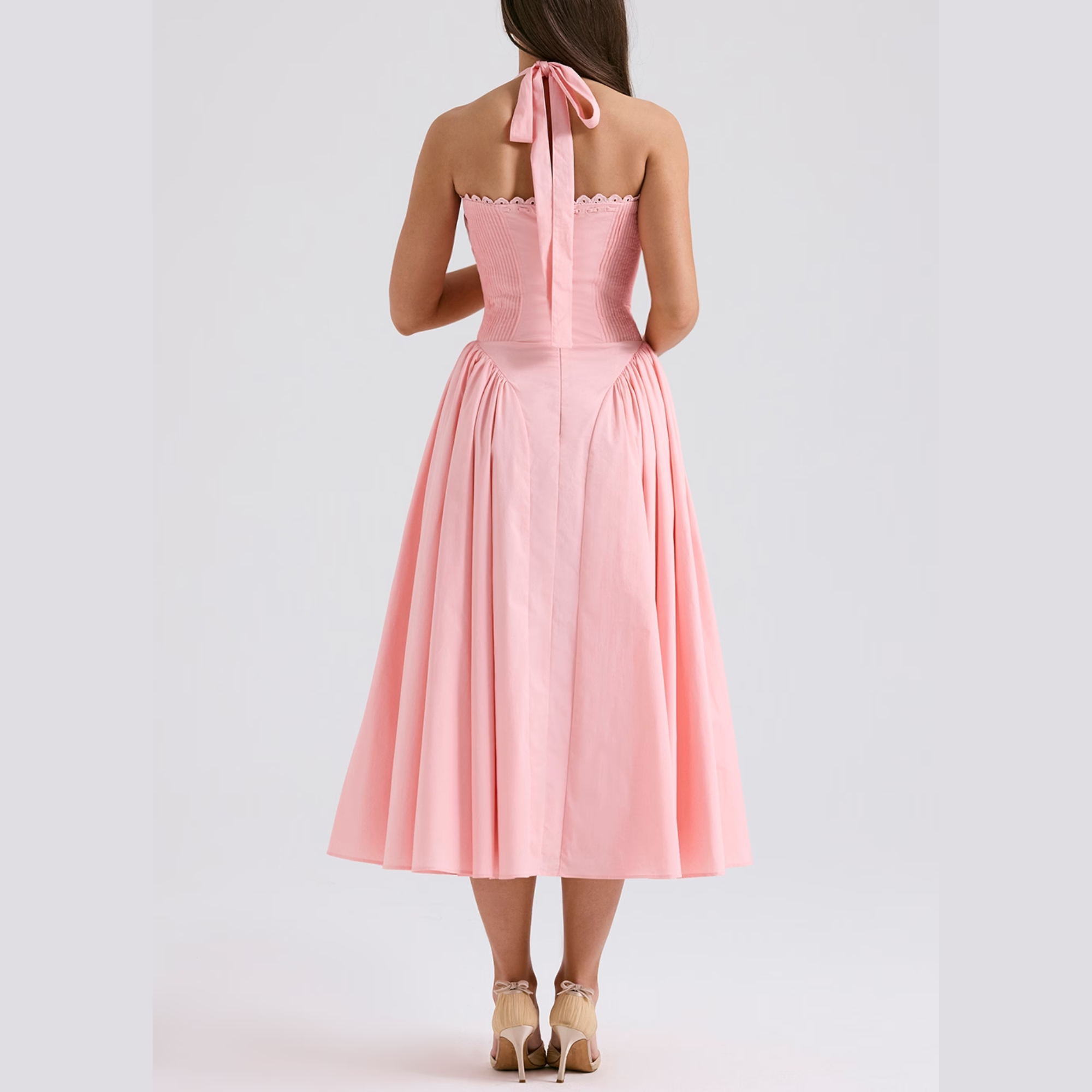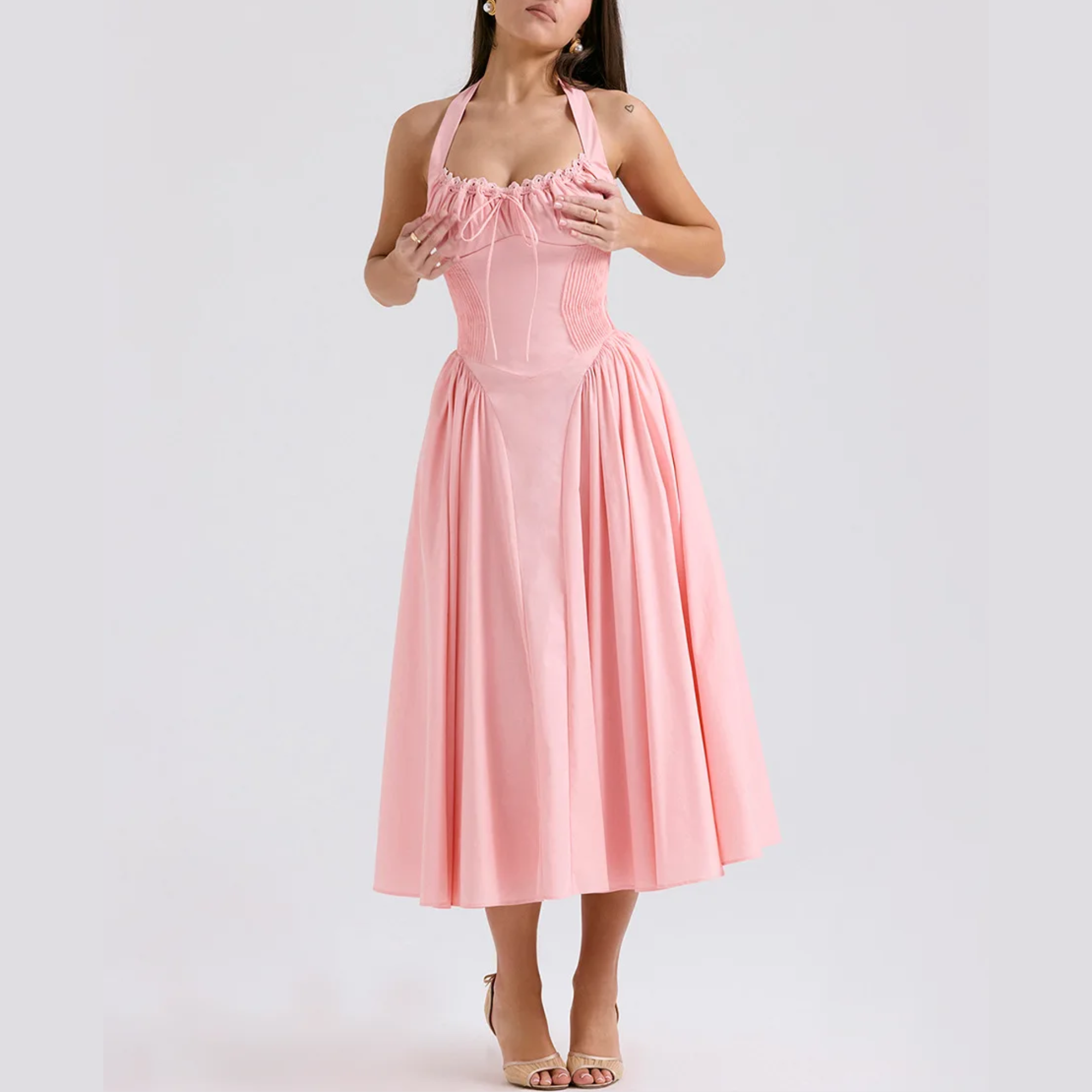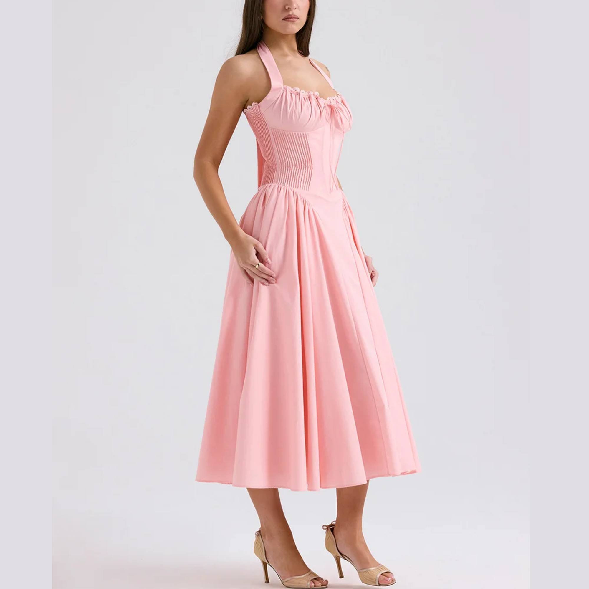 Abraza la belleza atemporal con este impresionante vestido A-Line Fit y Flare Midi. El cuello Halter proporciona un aspecto clásico pero contemporáneo, ideal para cualquier guardarropa de moda. Delicadamente elaborado con lados plisados en la falda, este vestido combina elegancia con un giro juguetón. Ya sea que asista a una fiesta en el jardín, un evento de cóctel o una cita para la cena, este vestido es su opción para el estilo y la gracia sin esfuerzo.