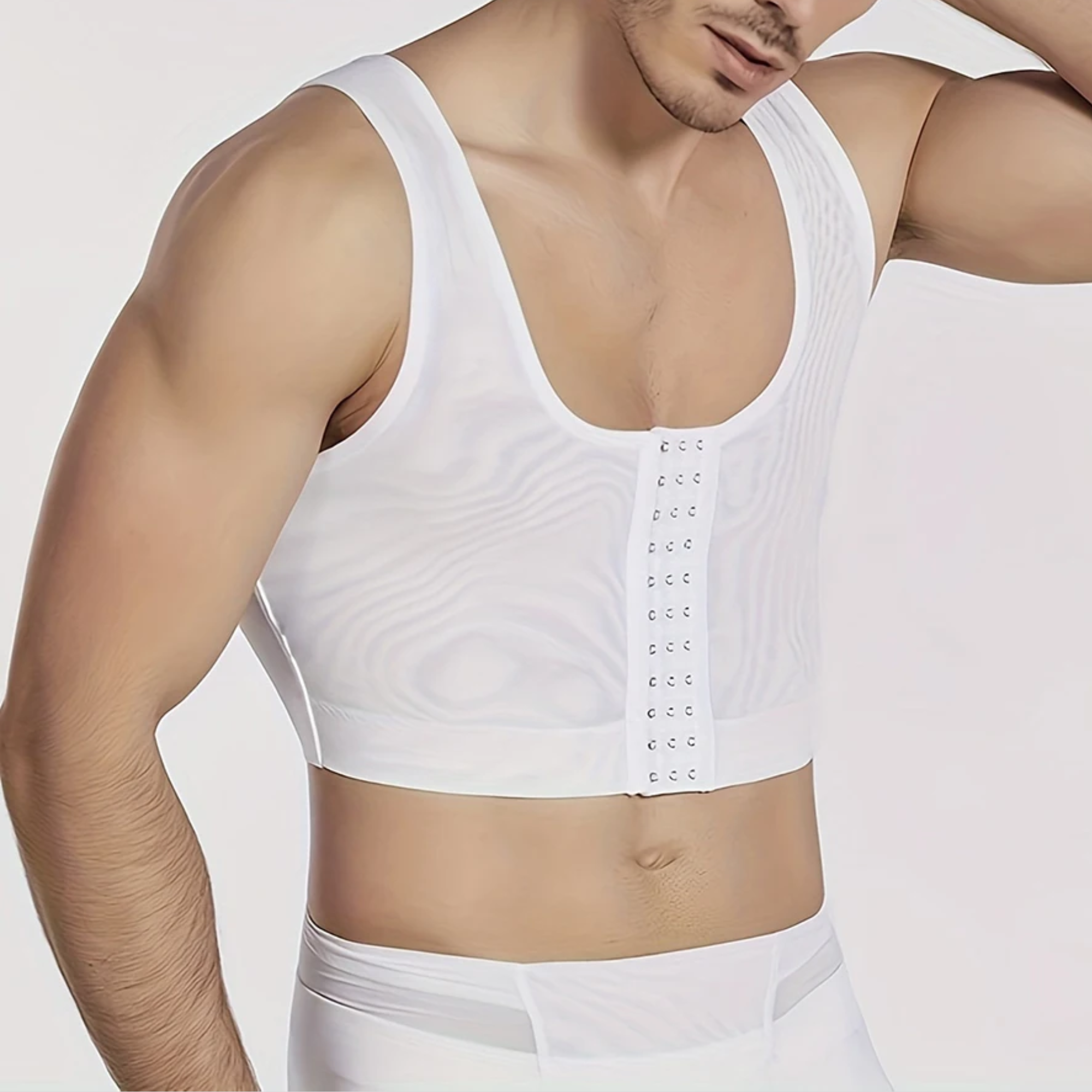 Introducing the ultimate solution for men seeking discreet support and enhanced posture. Our gynecomastia shaper vest is designed with a practical 3 row hook and eye fasten, allowing you to customize the fit for maximum comfort. Built with superior back posture support, it subtly improves your silhouette and posture throughout the day. Crafted from breathable materials, this vest is perfect for long hours of wear without compromising on comfort. Elevate your confidence with our all-in-one shaper vest that targets your needs efficiently.