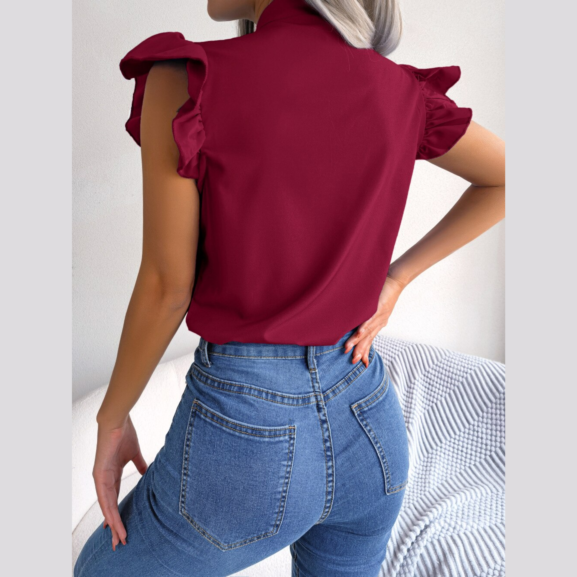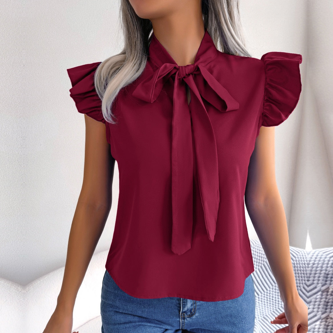 För alla plötsliga händelser i din kalender, ta på dig Britney. Denna drömtopp har en enfärgad färg med helfodrad insida. Den smickrande passformen är skräddarsydd i en knytringning med volangärmar. Den eleganta stilen på denna topp är ett måste.