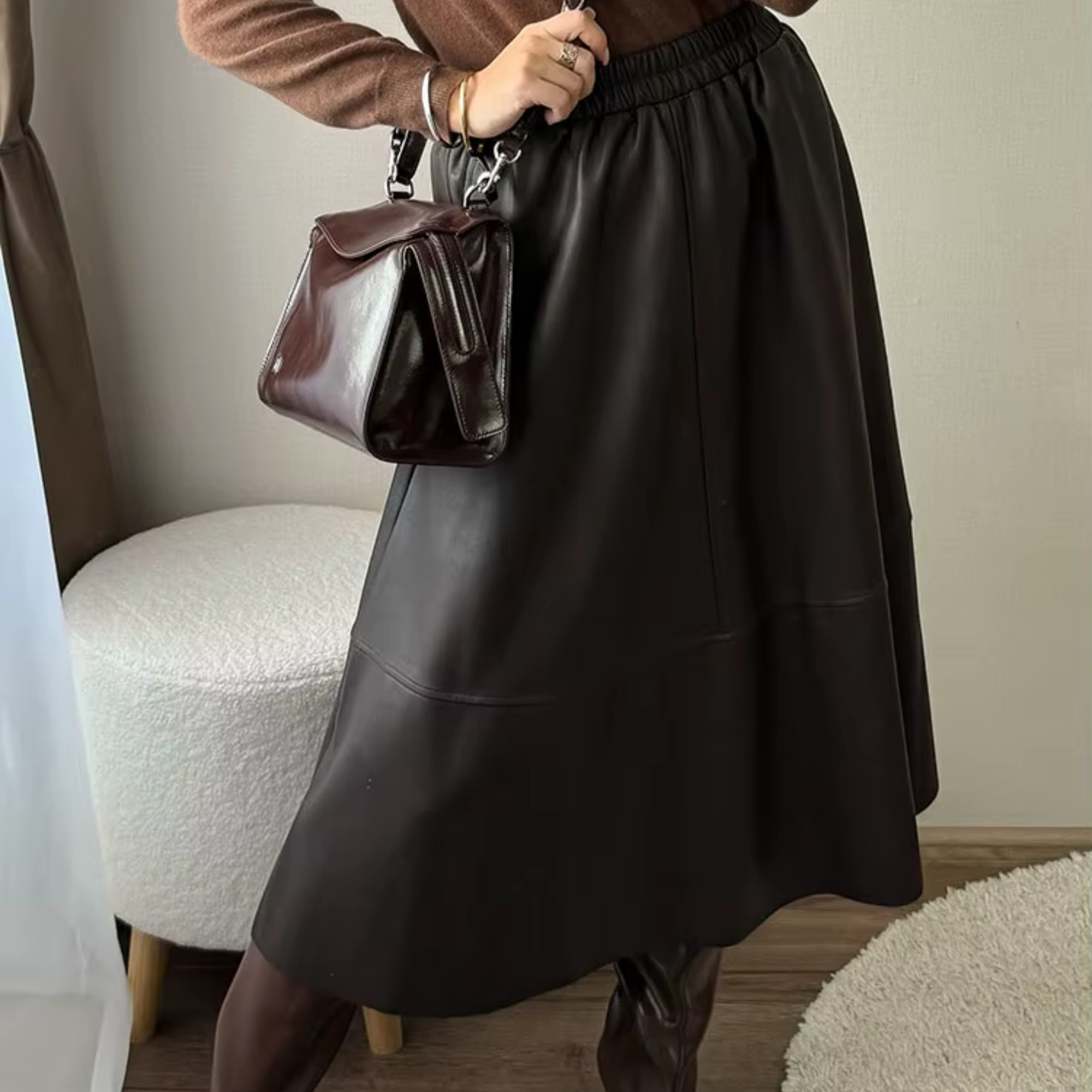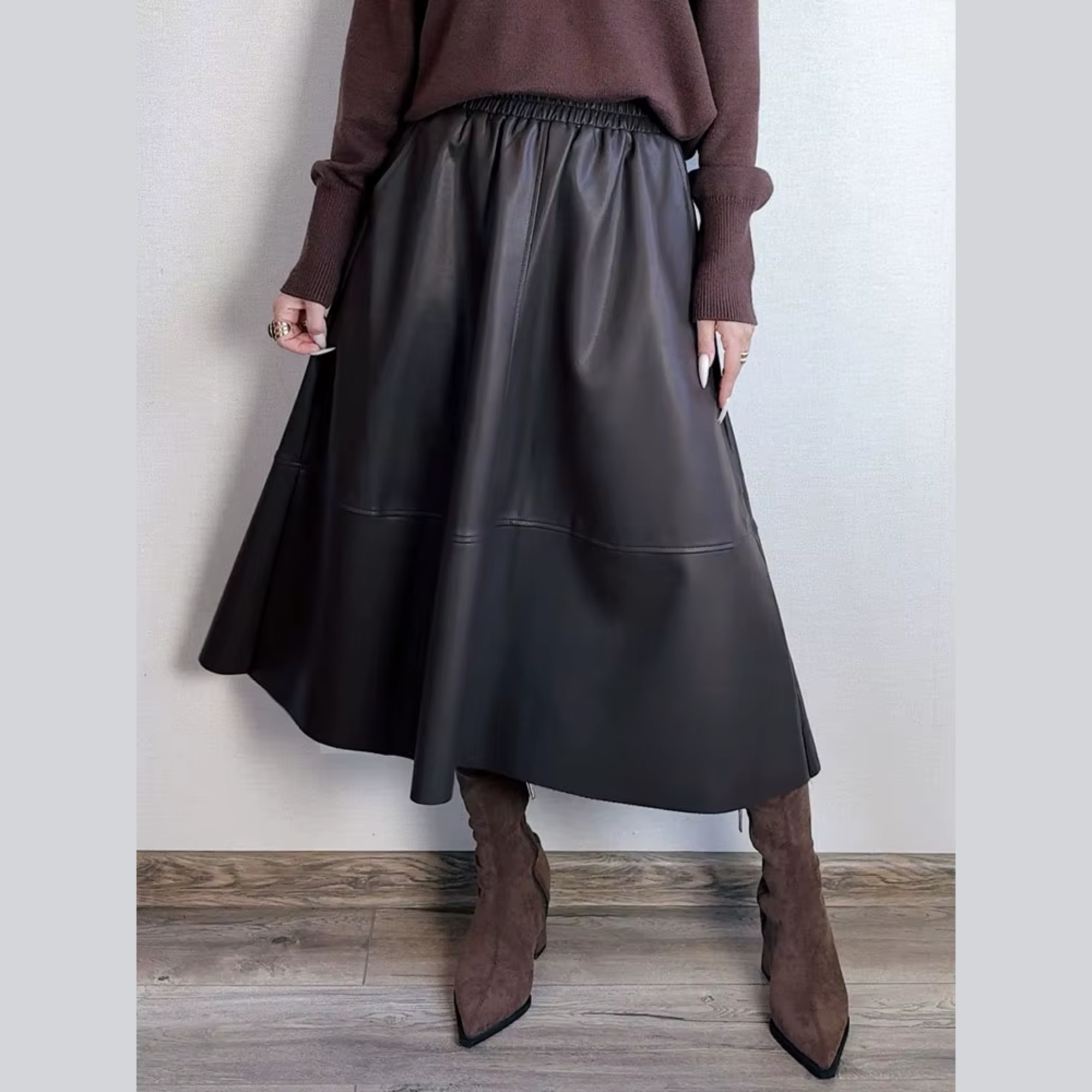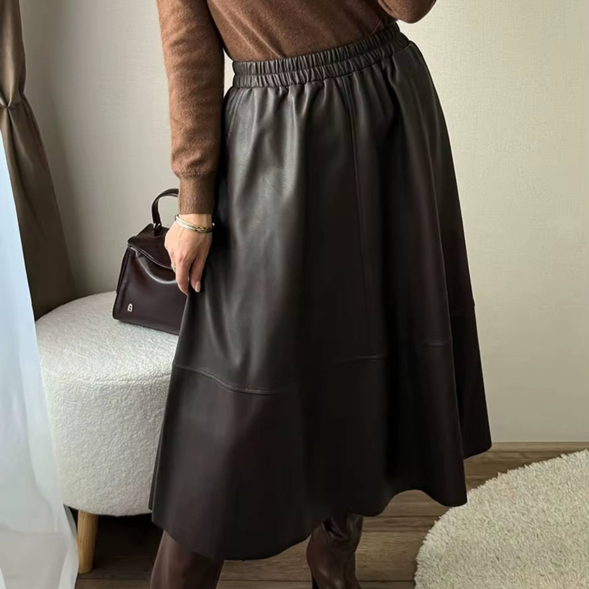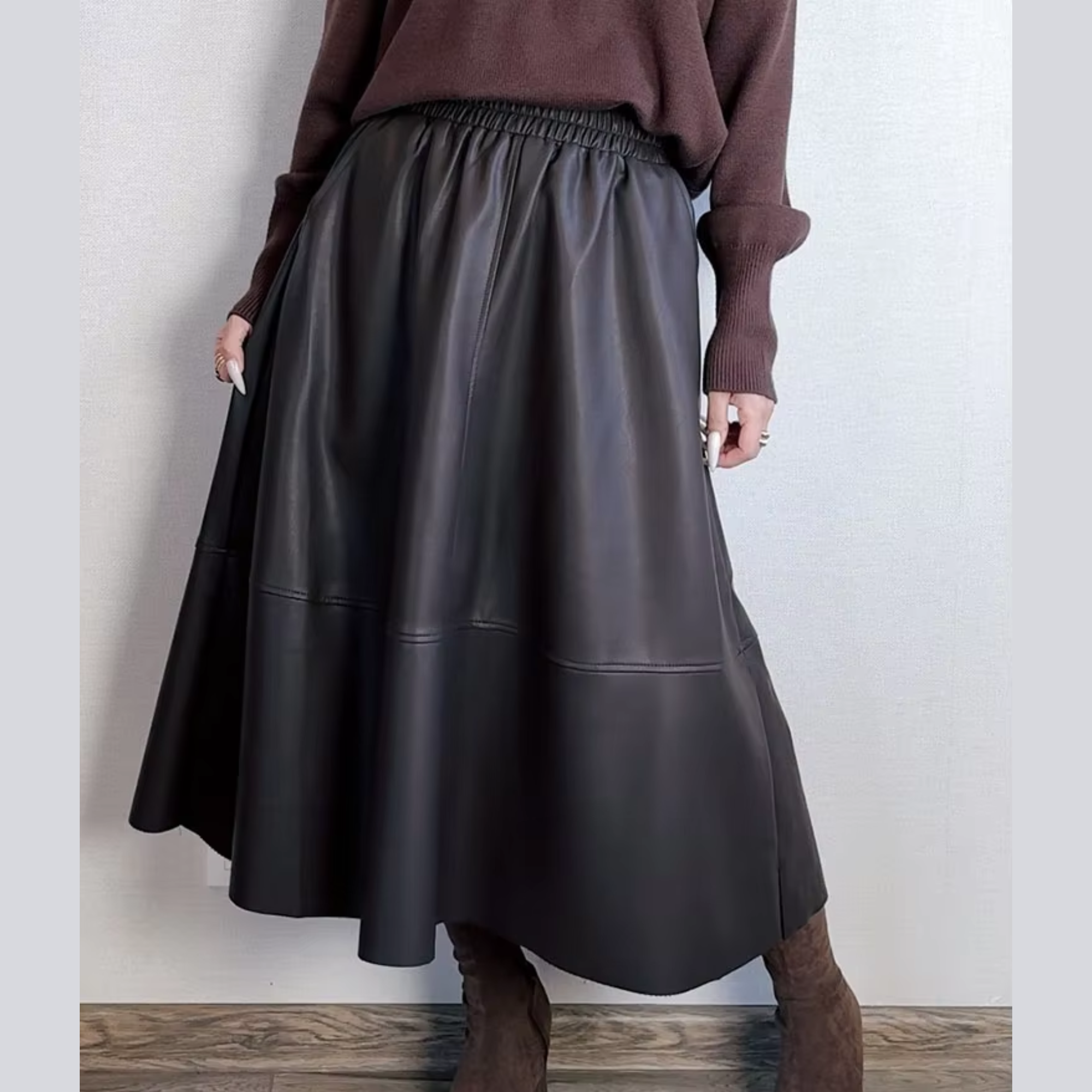 Uppgradera din modeupplevelse med denna trendiga midikjol i konstläder med resår i midjan och a-linjeform. Den är tillverkad för moderna kvinnor och erbjuder en elegant a-linjeformad skärning som framhäver vilken figur som helst. Den resåriga midjan garanterar en bekväm passform, medan midilängden är både elegant och mångsidig. Perfekt för kontorskläder eller en utekväll, denna kjol har praktiska fickor för extra bekvämlighet. Matcha den med dina favorittoppar och accessoarer för en elegant och trendig ensemble.