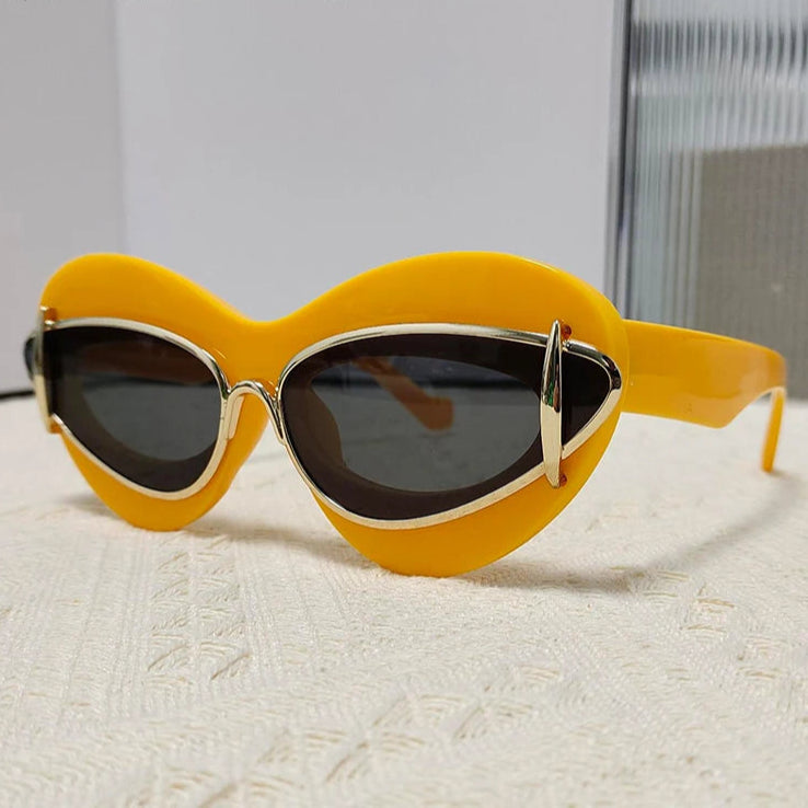 Uppgradera dina accessoarer med våra moderiktiga Cat Eye-solglasögon med avancerat UV400-skydd. Den innovativa designen med dubbla bågar ger en tuff men elegant look som sticker ut i mängden. Tillverkade av premiummaterial erbjuder dessa solglasögon en bekväm passform och robust skydd mot skadliga ultravioletta strålar. Perfekta för soliga dagar och utomhusaktiviteter, de ger en sofistikerad touch till din vardagliga outfit. Välj bland en mängd olika färger som matchar din stil. Njut av tydlig, oförvrängd syn samtidigt som du skyddar dina ögon och ser cool ut utan ansträngning.